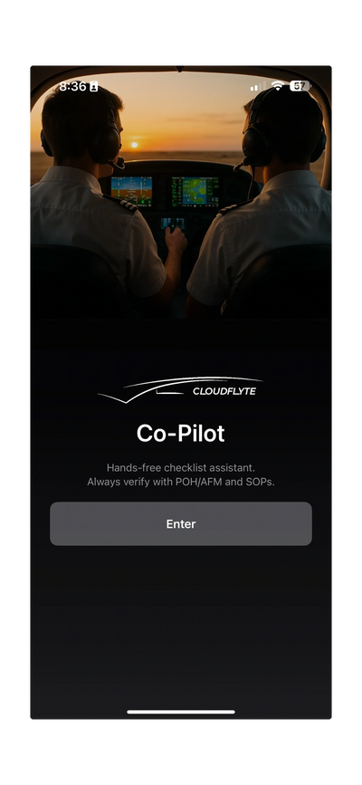 CoPilot by CloudFlyte is a voice-enabled aviation checklist app designed to improve safety, reduce cockpit workload, and simplify flight operations. Built by aviators for aviators, CoPilot transforms traditional paper checklists into a digital, hands-free experience that keeps your attention on what matters most—flying.